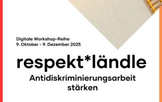 Wir freuen uns, Sie zur digitalen Workshop-Reihe „respekt*ländle – Antidiskriminierungsarbeit stärken!“ einzuladen, die im Zeitraum vom 09. Oktober bis 09. Dezember 2025 stattfindet. Die Reihe ist Teil des Projekts respekt*land, das von der Antidiskriminierungsstelle [...]