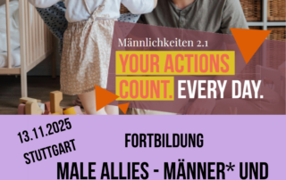 FachtagMale Allies - Männer* und Männlichkeiten im Gleichstellungskontextam26.02.2026 10-16 UhrHospitalhof in StuttgartDer Fachtag richtet sich an Gleichstellungsbeauftragte, Fachkräfte und Interessierte aus der Gleichstellungs-/Frauen*- und Männer*arbeit(vorläufiges) Programm09:30 Ankommen10:00 Begrüßung und GrußworteBegrüßung und Moderation: LAG J*M*BW• Minister [...]