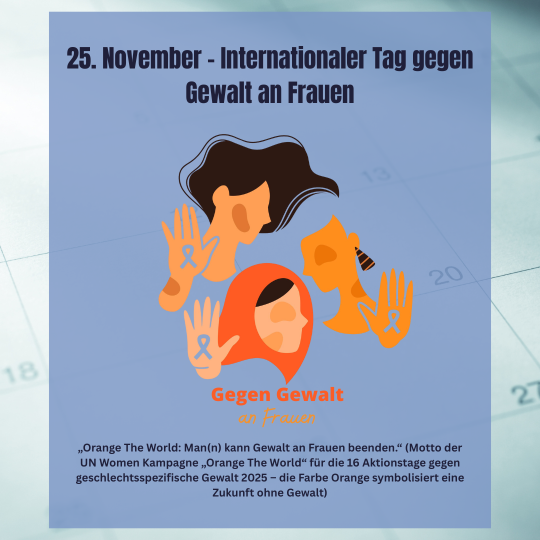 Nzinga2025-11-25T14:27:26+00:0025. November – Internationaler Tag gegen Gewalt an Frauen „Orange The World: Man(n) kann Gewalt an Frauen beenden.“ (Motto der UN Women Kampagne „Orange The World“ für die 16 Aktionstage gegen geschlechtsspezifische Gewalt 2025 – die Farbe Orange symbolisiert eine Zukunft ohne Gewalt) Was ist der Internationaler Tag gegen Gewalt an Frauen? Dieser Tag, der [...]